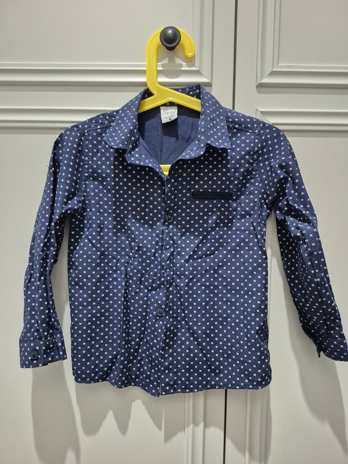 Erkek Çocuk Lacivert Puantiyeli Uzun Kollu Gömlek