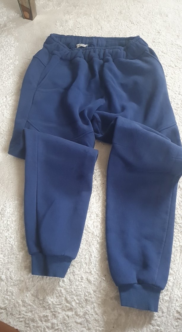 Erkek çocuklar için lacivert renkte, rahat kesim ve yumuşak sıcak kumaştan üretilmiş eşofman altı. Düz tasarımı ve lastikli paçalarıyla sokak stiline uygun.