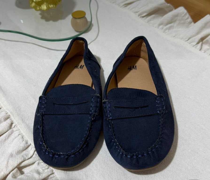 Erkek çocuklar için koyu lacivert süet loafer, tokalı detaylı, trend sokak stiline uygun. Hm markası 29 numara