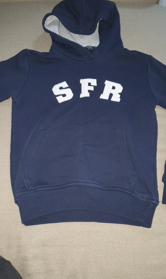 Lacivert renkli, uzun kollu ve bisiklet yaka erkek çocuk sweatshirtü, "SFR" baskılı ve ön cep detaylı, yumuşak kumaştan üretilmiştir.