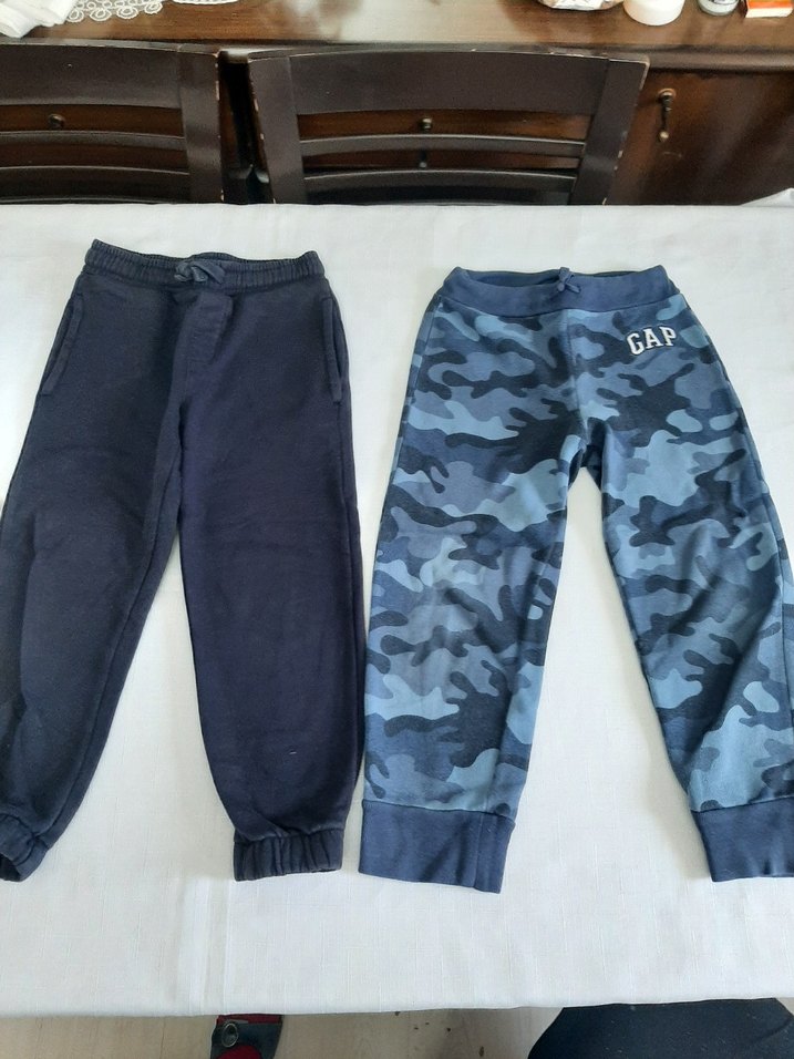 Erkek çocuklar için lacivert ve mavi kamuflaj desenli, rahat kesim ve yumuşak kumaşlı iki eşofman altı. Biri düz, diğeri GAP logolu. iki urun birlikte satışta . GAP olan daha fazla kullanılmıştır. marka Spencer ise oldukça temiz durumdadır. 5 yaşa uygundur.