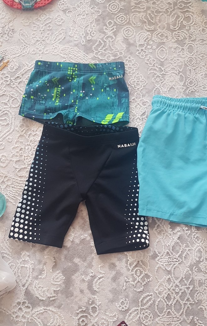 3 ayrı erkek cocuk mayo, 2 tanesi Decathlondan ve 1 sezonluk kullanıldı, makinada yıkanıyor sorunsuz. 4-5 yasa uygun ama lastik mesafesini çektim. siyah olan sadece 750 tl idi aldığımda. Mavi yüzme şortu ise kolay kuruyan kumaştan o ce marka hiçbir sorunları yok. zaten cabuk büyüduklerinden her sezon değişiyor