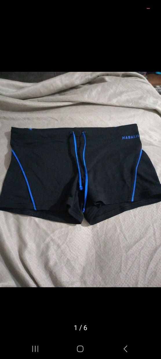 İnce askılı, mavi bağcık detaylı koyu lacivert erkek çocuk yüzme şortu, Nabaiji marka logo ile sade tasarım.8.10 yaşa uygun