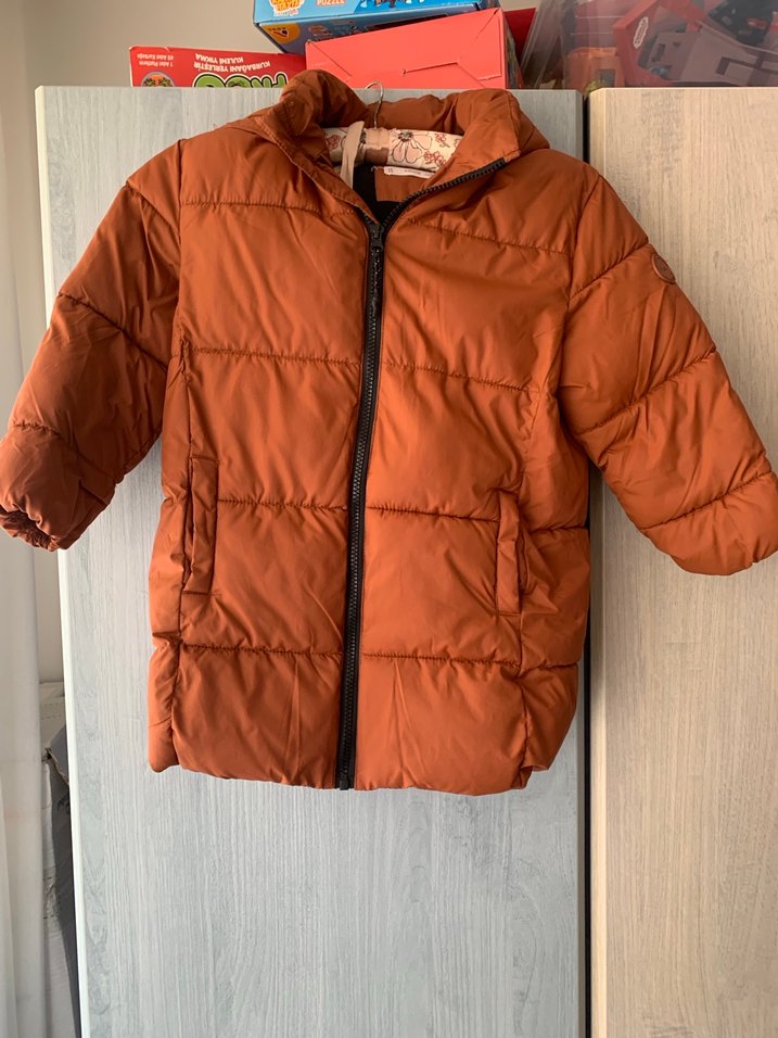 Erkek çocuk için koyu kahverengi, fermuarlı ve yumuşak sıcak kumaştan yapılmış, sokak stili için uygun, kesimli kaban.