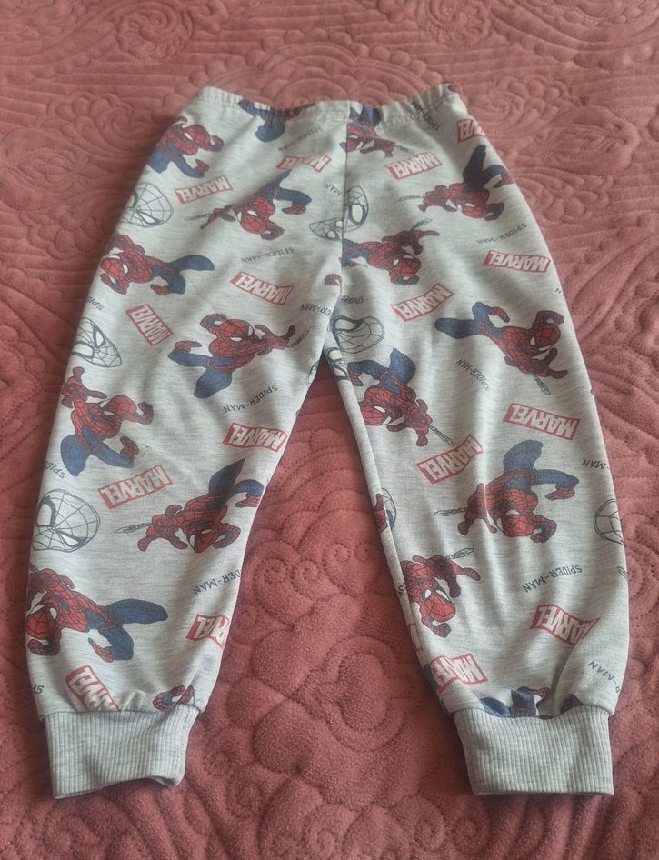 Gri renkli, örme bel ve paça manşetli, bol kesim pamuklu eşofman altı. Spider-Man ve Marvel baskılarıyla sokak modasına uygun.Küçük bi defosu fotoğraflarda mevcuttur.O yüzden fiyati uygundur.