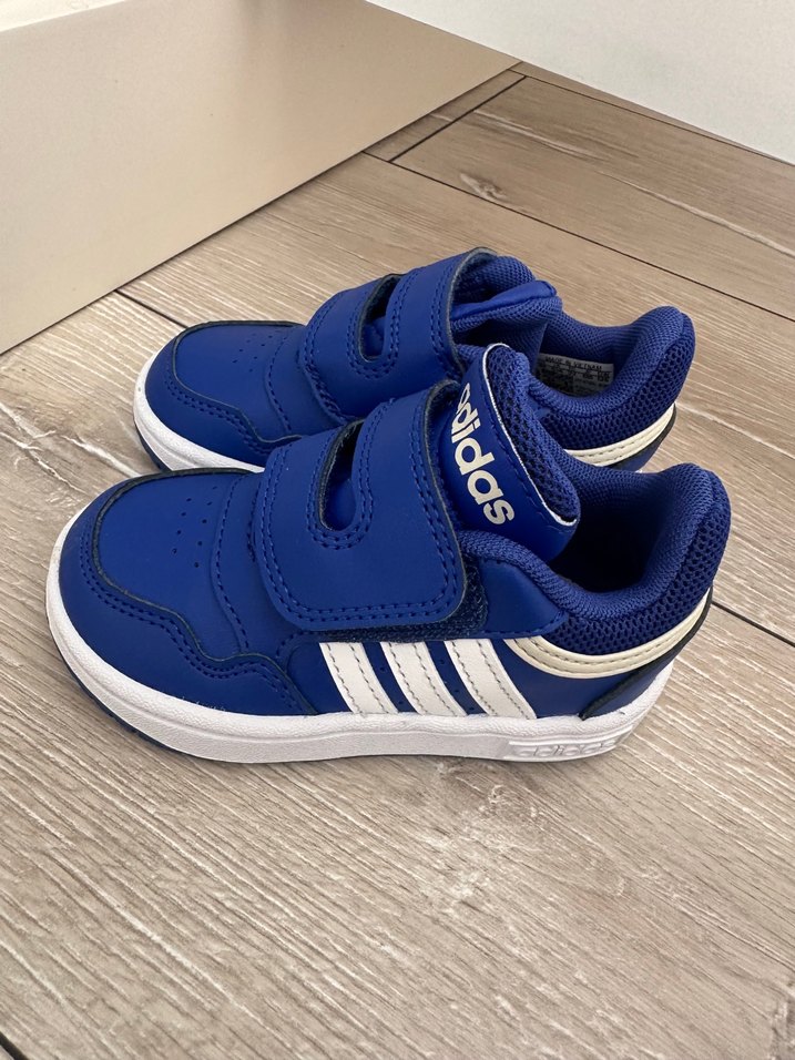 Mavi Adidas erkek çocuk spor ayakkabısı, cırt cırtlı, kauçuk tabanlı, baskılı desenli, trend sokak giyimi için uygun. Sıfır ürün 22 numara