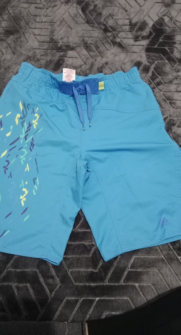 Renkli tie-dye desenli, bağcıklı bel lastikli mavi erkek çocuk mayo şortu. Kısa kesimle rahat kullanım sağlar. cocuk 11 12 yas m beden