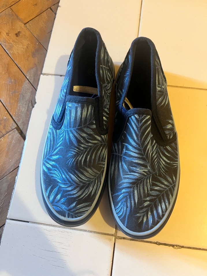 Erkek çocuklar için koyu mavi batik desenli, bağcıksız loafer. Kauçuk tabanlı, sokak stiline uygun ayakkabı. Çok Az kullanıldı hiçbir defosu yok 33 numara