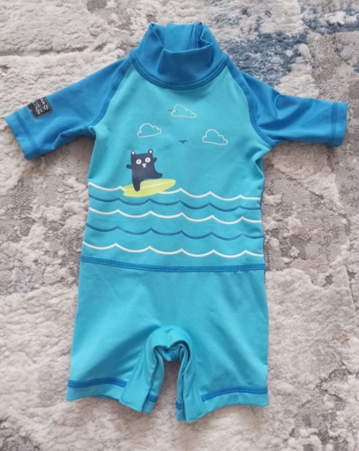 Pazarlık payımız vardır.Erkek çocuklar için kısa kollu, pastel mavi renkli, üzerinde dalgalar ve sörf yapan ayı baskısı bulunan mayo. Yüksek yakalı ve rahat kullanımlı. ♂️