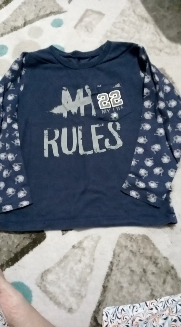 Uzun kollu, bisiklet yaka, yumuşak ve sıcak polar kumaştan erkek çocuk sweatshirtü. Salaş kesim, baskılı ve örme detaylı kollar, önünde "RULES 22 M" baskısı bulunur.