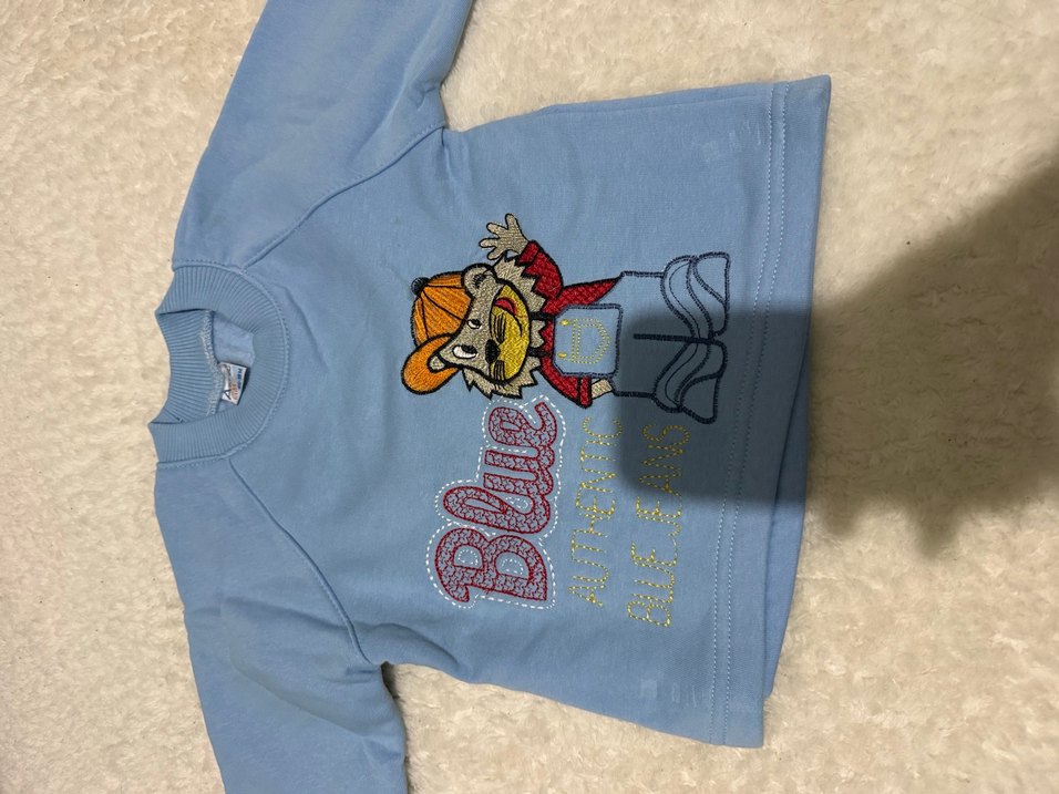 Erkek çocuk için uzun kollu, yuvarlak yakalı ve bol kesim olan, yumuşak ve sıcak kumaştan üretilmiş mavi baskılı sweatshirt. Düğme detayları ve renkli baskısı ile rahat bir tarza sahiptir.