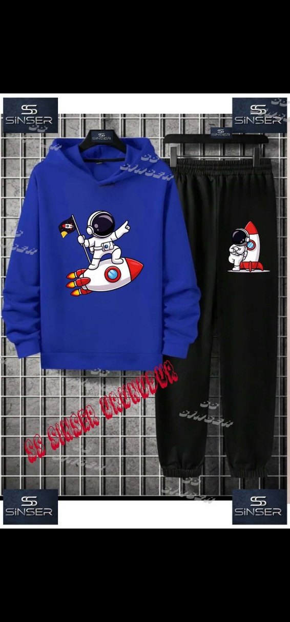 Erkek çocuklar için mavi baskılı kapüşonlu sweatshirt ve siyah eşofman altı takımı. Sweatshirt, astronot ve roket baskılı, rahat kesim ve yuvarlak yaka. Eşofman altında ayar için cırt cırt bulunur. Yumuşak ve sıcak kumaş.