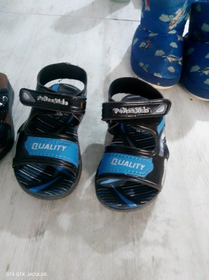 Mavi baskılı, tokalı, kauçuk malzemeden erkek çocuk terliği, sokak tarzına uygun.terlik ve sandalet