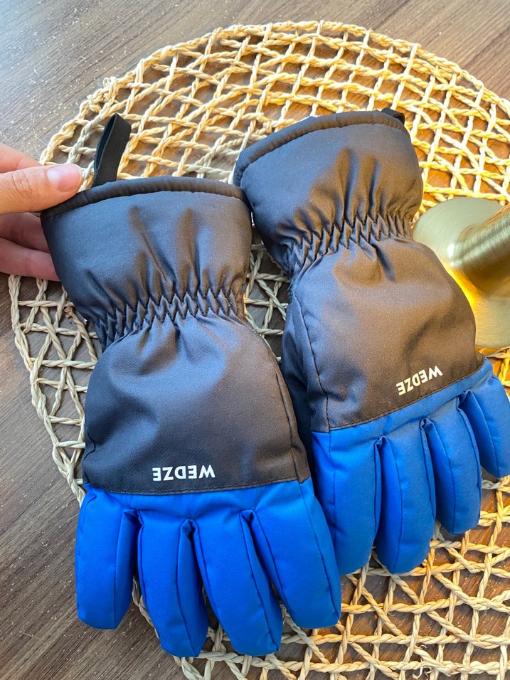 Erkek çocuklar için mavi biker tarzı eldiven, nakış detaylı ve yumuşak kürk dokulu kumaştan. Velcro bant ile sabitlenir. Hiç bir sorunu yok 1 sezon kullanıldı küçüldüğü için satışta 7-8 yaşında kullandık