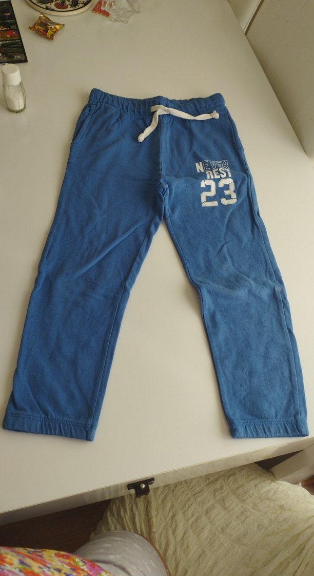 Erkek çocuklar için bol kesim, mavi denim eşofman altı. "23" ve "Never Rest" baskılıdır. Ayarlanabilir konfor için kemerli bel bulunmaktadır.