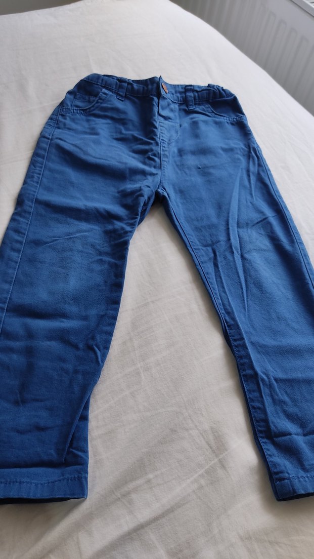 Erkek çocuklar için bol kesim, parlak mavi denim pantolon. Düz ve sade tasarımıyla zahmetsiz şıklık sunar. Normcore tarzına uygundur.