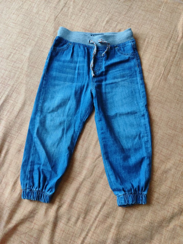 Erkek çocuklar için mavi kot pantolon, bol kesim, kemerli ve lastikli paçalarla rahat bir kullanım sunar. Günlük şıklık için uygundur.