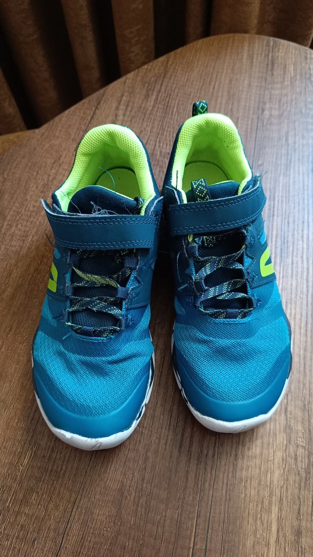 Mavi renkli, cırt cırtlı erkek çocuk spor ayakkabısı. Lastik tabanlı, renkli ve sade sokak stili ayakkabı.