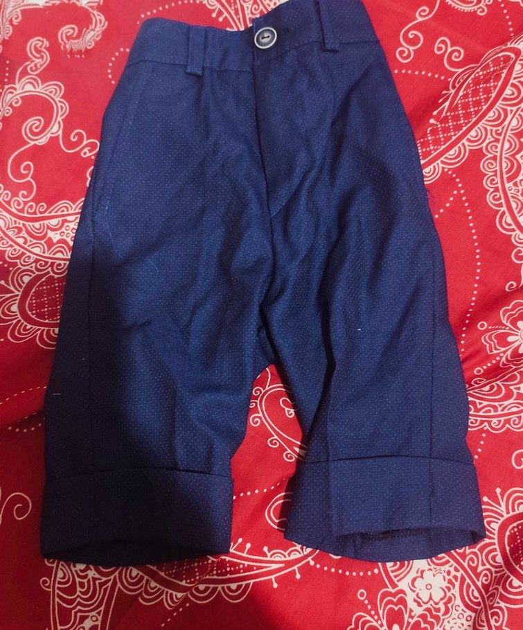 Sentetik kumaştan yapılmış, düğmeli mavi dar kesim erkek çocuk pantolonu. Trendy ve rahat sokak stili için uygundur.
