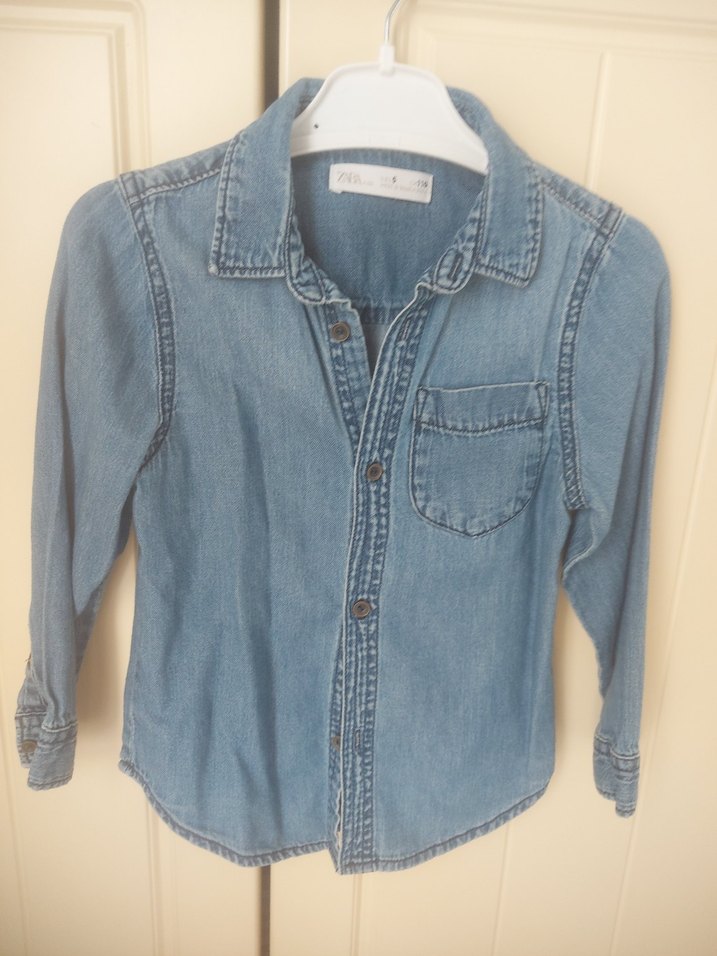 Erkek çocuk için bol kesim, uzun kollu, yakalı ve düğmeli mavi denim gömlek. Sokak tarzı için uygun rahat bir tasarıma sahiptir. 4-5 yaş için uygun