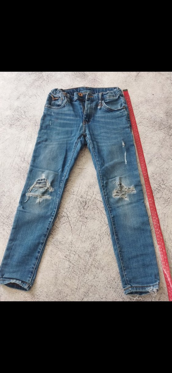 Erkek çocuklar için mavi denim pantolon, regular fit ve kemer tokalı tasarıma sahip, sokak modasına uygun ve hafif yırtık detaylı.