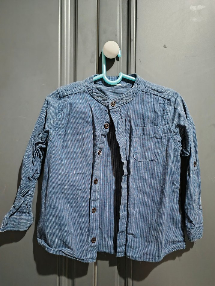Erkek Çocuk Mavi Denim Uzun Kollu Gömlek