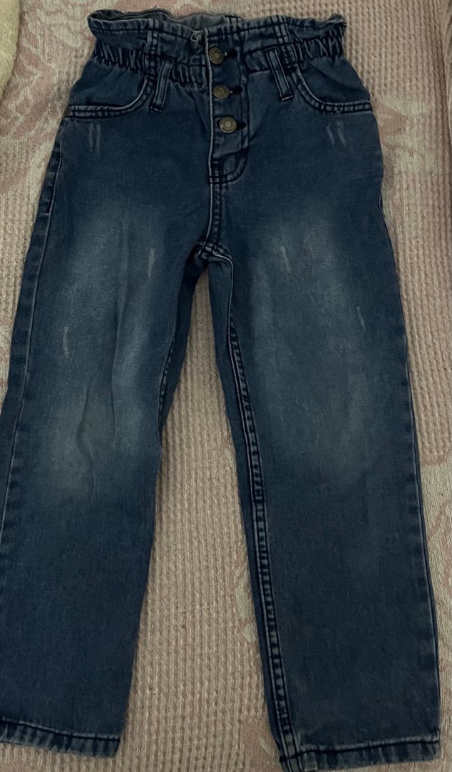 Erkek Çocuk Mavi Düğmeli Denim Pantolon