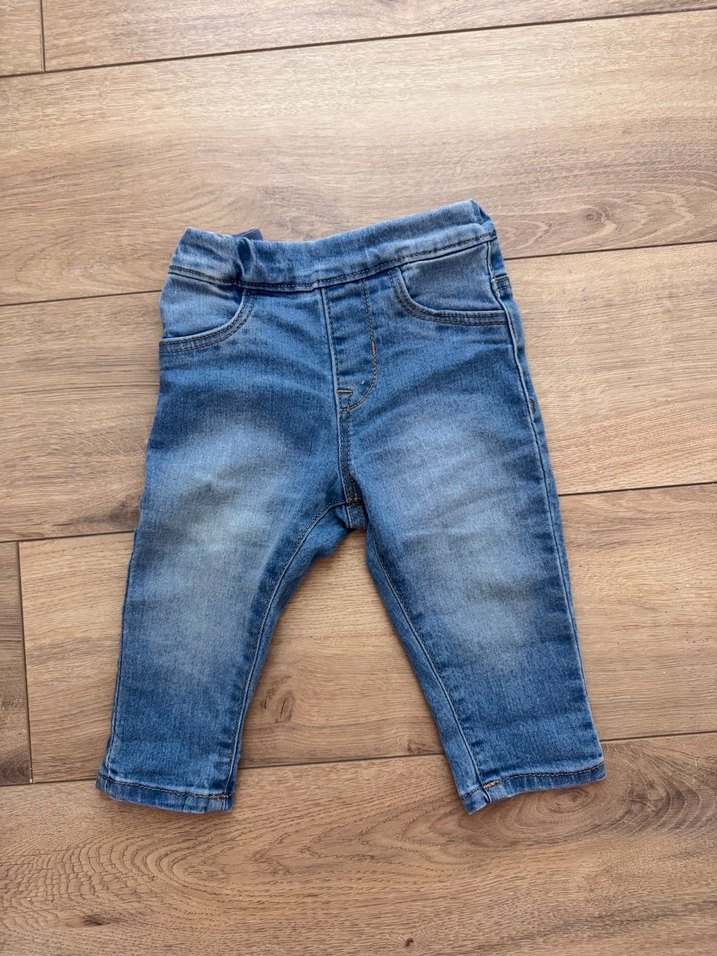 Erkek çocuklar için elastik belli, fitted kesim mavi kot pantolon. Düz ve normcore tarzında, renkli ve sade tasarım.