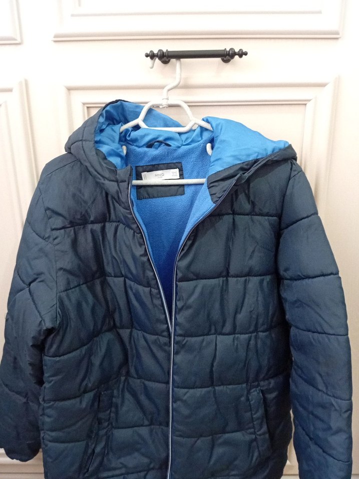 Erkek Çocuk Mavi Fermuarlı Kapüşonlu Mont