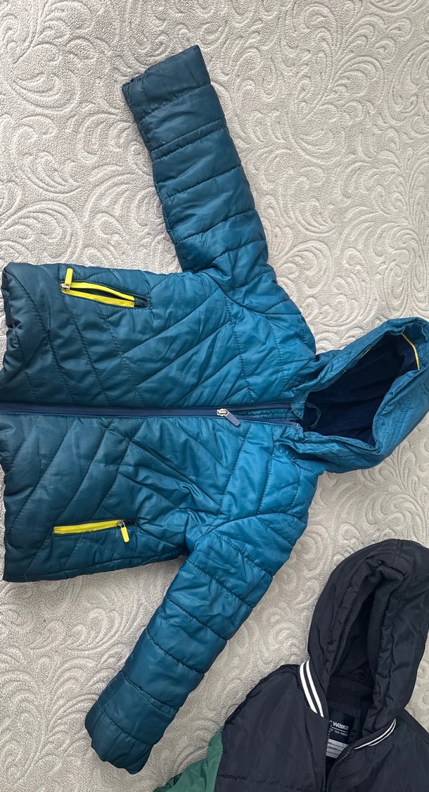 Erkek çocuklar için mavi, fermuarlı, kapüşonlu ve kesimli mont. Yumuşak ve sıcak kumaştan, sokak stili için uygun, sade tasarım.