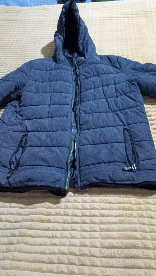 Erkek çocuk için mavi ve gri tonlarında, fermuarlı ve kruvaze yakalı, sokak tarzı, yumuşak ve sıcak kumaştan yapılmış dar kesim mont.