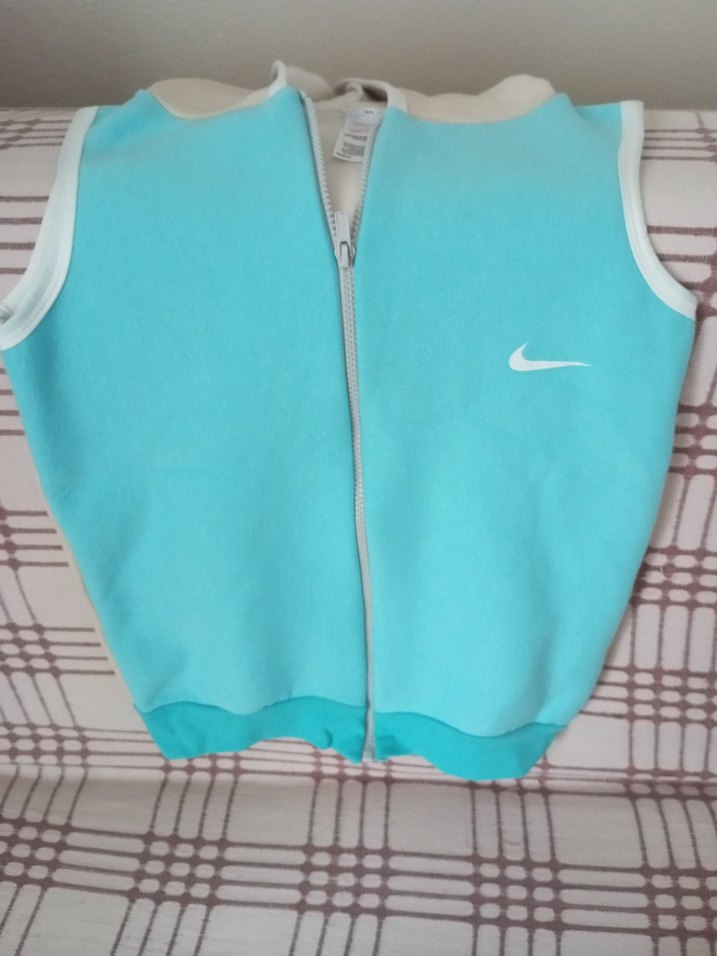 Erkek çocuklar için mavi, fermuarlı, V yaka, kolsuz ve vücuda oturan yelek. Yumuşak ve sıcak kumaştan, trend sokak giyimi için uygundur.