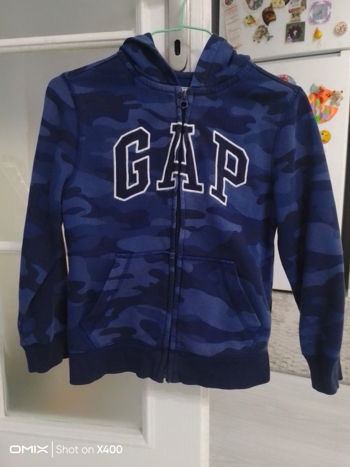 Fermuarlı, kapüşonlu ve cep detaylı, koyu mavi kamuflaj desenli, GAP baskılı erkek çocuk sweatshirtü. Yumuşak ve sıcak kumaştan üretilmiştir. az kullanıldı, görsellerdeki gibidir. Fotoğraftaki gibi penye kısmında hafif beyazlama var yıkanmadan kaynaklı.