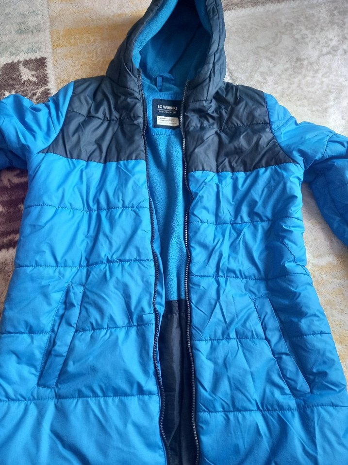 Erkek Çocuk Mavi Kapüşonlu Fermuarlı Mont