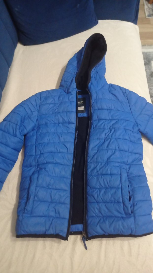 Erkek çocuklar için koyu mavi, kapüşonlu ve fermuarlı hiçbir deformesi yok oğluma küçük geldiği için satıyorum