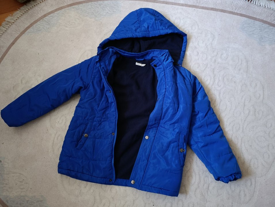 Erkek çocuklar için saks mavi renkte, kapüşonlu mont. Normal kesim, yumuşak ve sıcak kumaş astar, sade ve günlük tarzda yepyeni bir mont 7/10 yaş minyon tipli ise 10 yaş olur