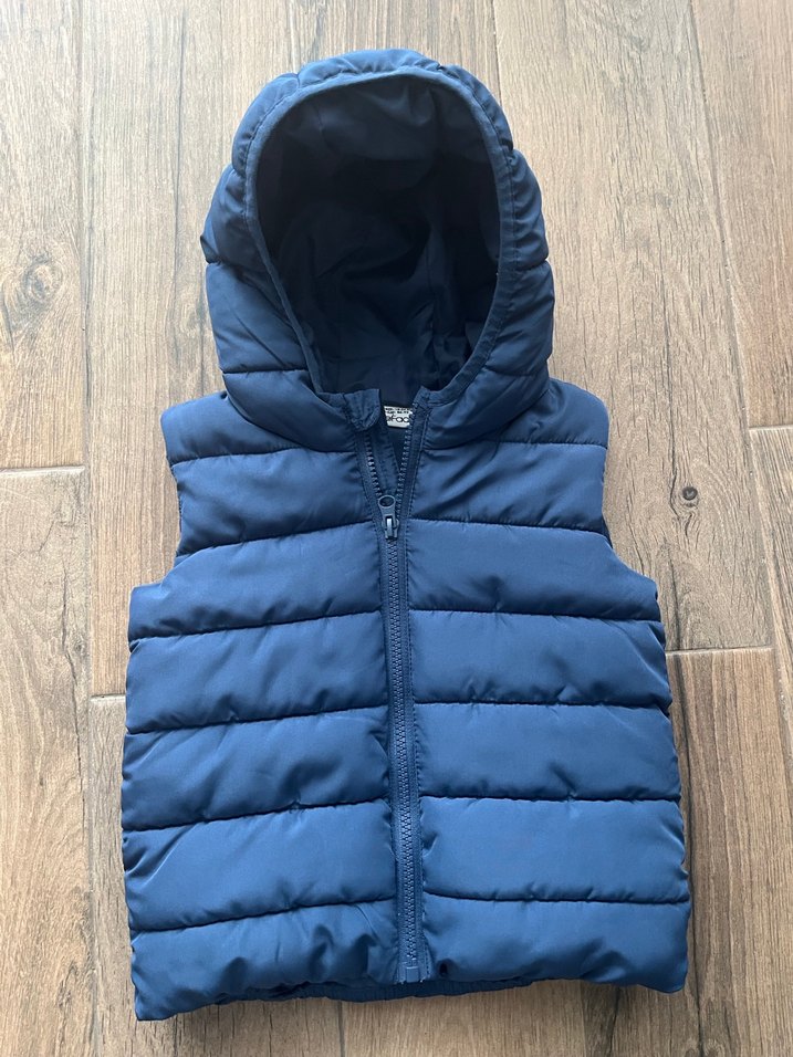 Erkek çocuklar için mavi kapüşonlu, fermuarlı, şişme yelek ürün sıfır dır fakat etiketi yok