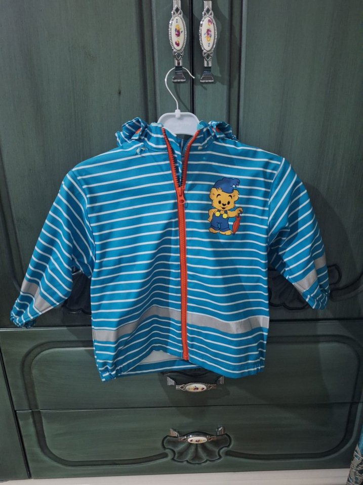 Renkli mavi çizgili desenli, baskılı ayıcık figürlü, fermuarlı ve yaka detaylı erkek çocuk yağmurluğu. Yumuşak ve sıcak tüylü kumaştan üretilmiştir. ️