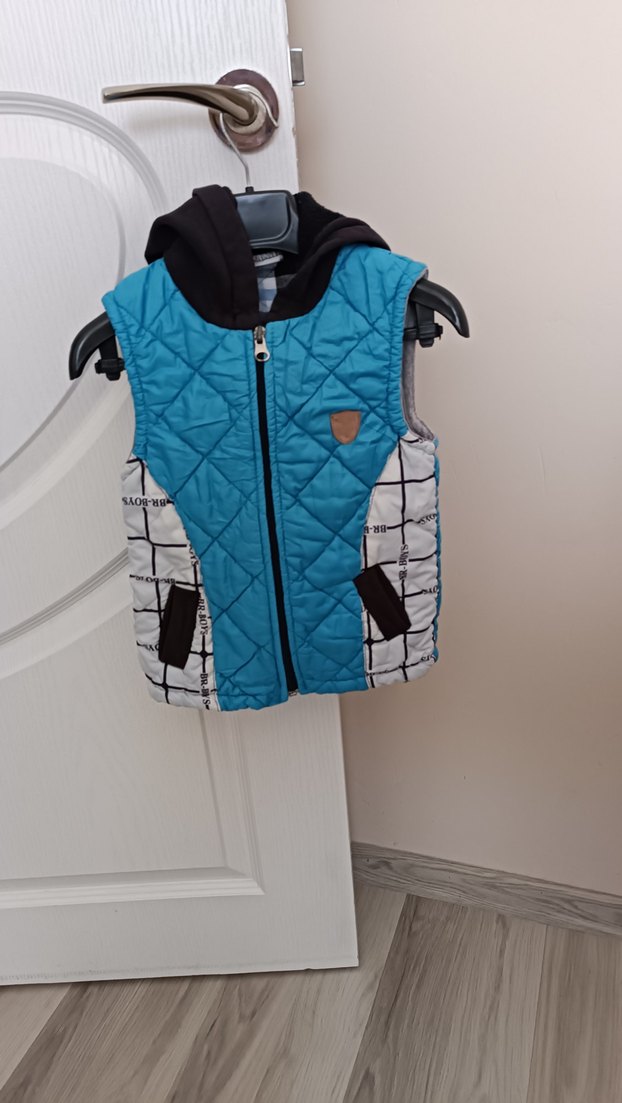 Erkek Çocuk Mavi Kapüşonlu Yelek