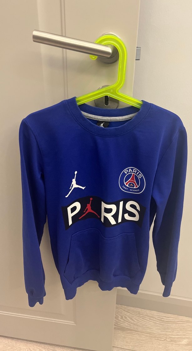Uzun kollu, bisiklet yaka ve bol kesim erkek çocuk sweatshirt. Pamuklu kumaş, iyi durumda.