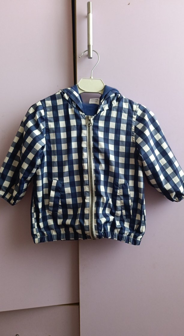 Erkek Çocuk Mavi Kareli Rahat yagmurluk