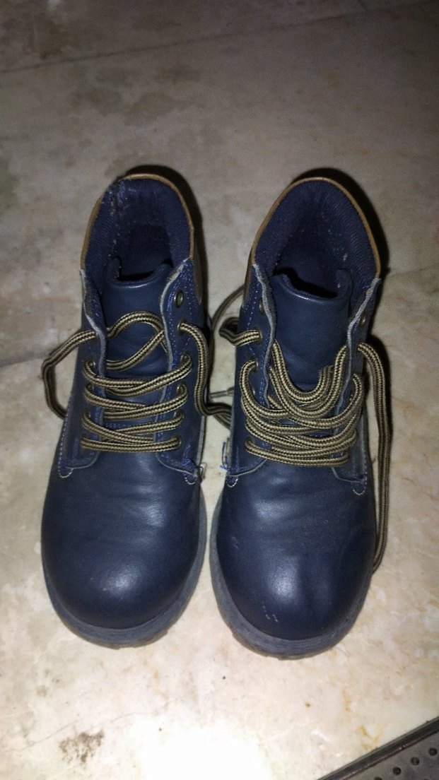 Erkek çocuklar için mavi kauçuk botlar, tokalı tasarıma ve gri bağcıklara sahiptir, trendi günlük ve normcore stil sunar.