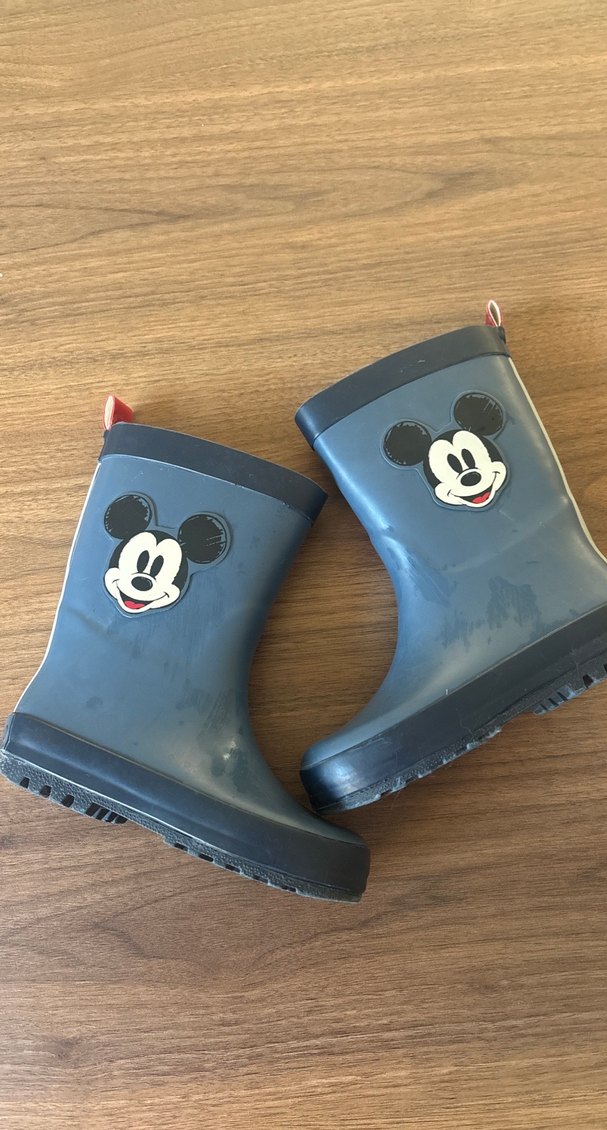 Mavi kauçuk erkek çocuk botları, Mickey Mouse baskılı detaylıdır. Sokak tarzına uygun bir modeldir. çok iyi durumda