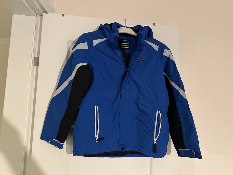 Erkek çocuk mavi kayak montu, fermuarlı cepler ve uzun kollu, yumuşak ve sıcak kumaştan yapılmış, şık ve rahat bir tasarıma sahiptir. ⛷️
