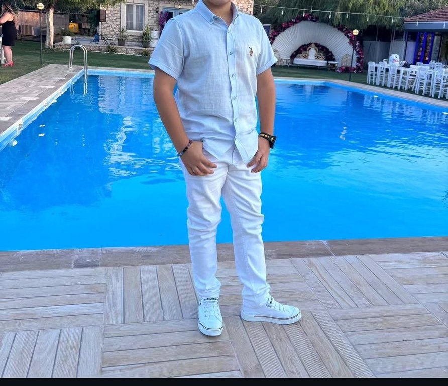 Erkek çocuklar için kısa kollu, yakalı ve düğmeli keten gömlek. Pastel mavi renkte, regular fit ve sade tasarımlı. Göğüste küçük işlemeli logo bulunur.
