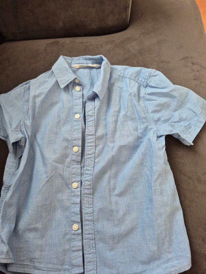 Erkek çocuk için kısa kollu, düğmeli ve yakalı denim gömlek. Rahat ve bol kesimiyle günlük kullanıma uygundur. Düz mavi renkte, sade normcore tarzda.
