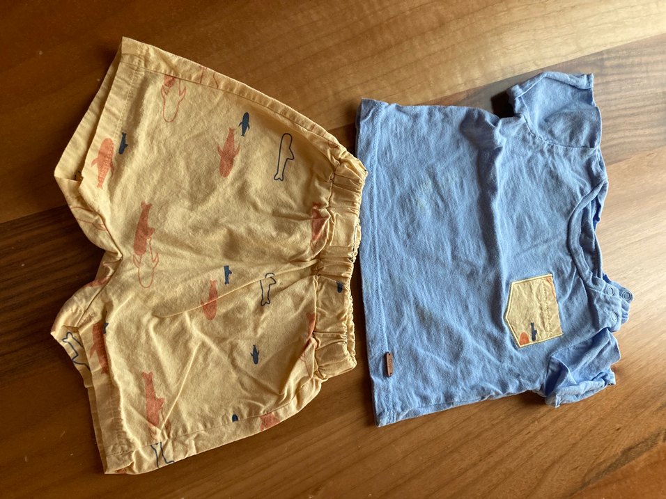 Erkek çocuk için pastel mavi kısa kollu üst ve sarı, balık desenli şort. Rahat ve hafif kumaştan yapılmıştır. Lekesiz Özdilek ürünü