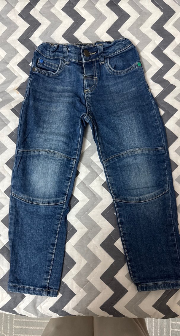 Erkek çocuklar için regular fit mavi kot pantolon, tokalı detaylara ve sade tasarıma sahiptir, günlük sokak stiline uygundur. Hiçbir degorme yok 3/4 yaş