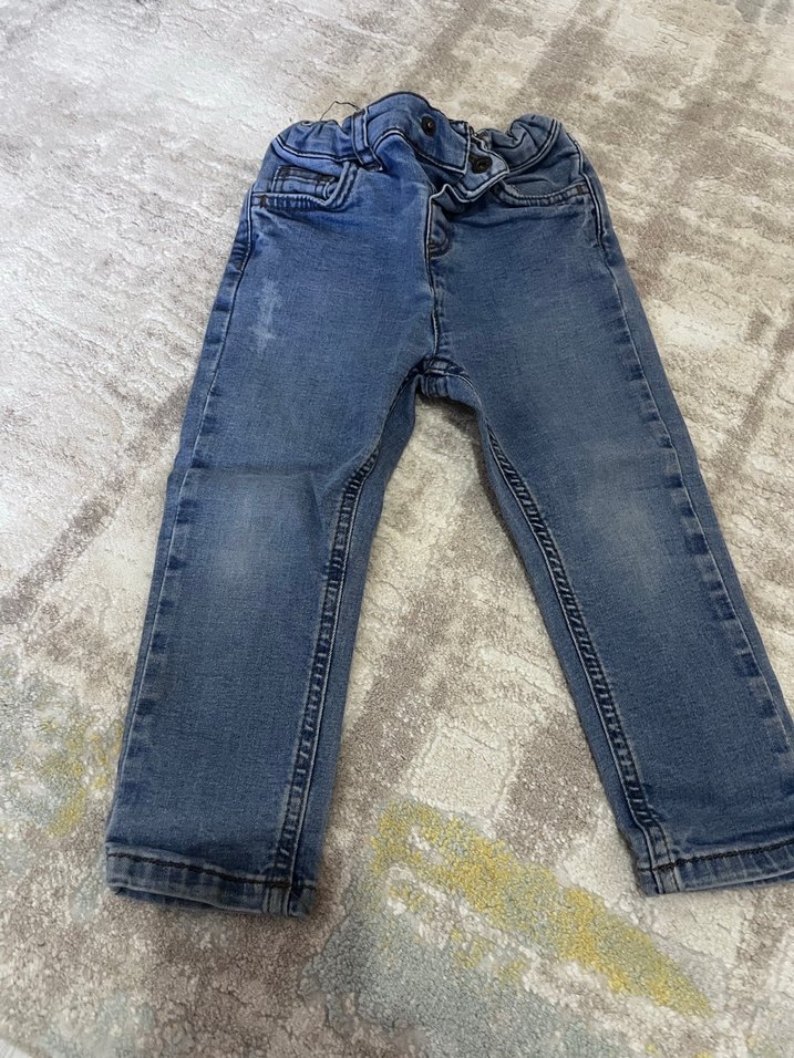 Erkek çocuklar için regular fit mavi kot pantolon, tokalı bel detayıyla sokak stili için uygundur. Kumaşında hafif gri tonlar bulunur.
