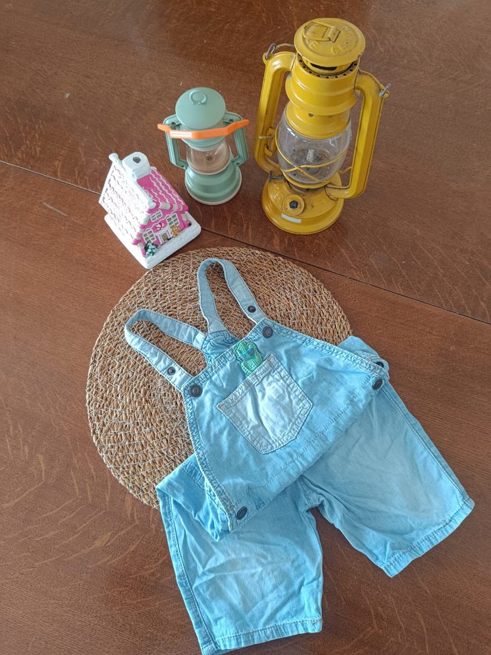 Erkek çocuklar için hafif mavi kot, salaş kesim ve baskılı detaylara sahip kolsuz salopet, bohem ve zahmetsiz şıklık sunar. az kullanılmış belli belirsiz ufak bı lekesi var görselde belirttim
